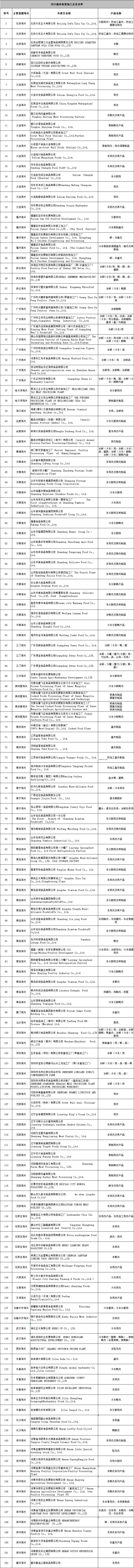 海关总署公布我国152家出口禽肉备案加工企业名录 腾讯网