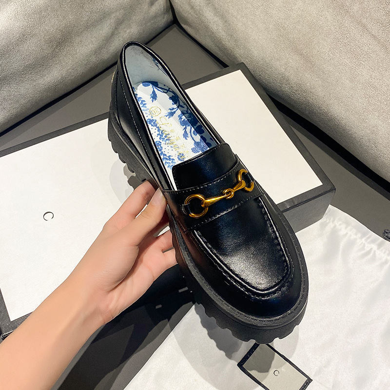 英倫氣質厚底樂福鞋 網紅小蜜蜂刺繡 網紅小蜜蜂馬銜扣樂福鞋女鞋厚底皮鞋小跟鞋 好物嚴選